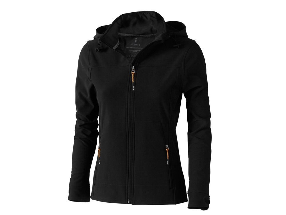 Женская куртка софтшел Langley. Стандартный покрой. Отстегивающийся капюшон на шнурках со стопперами. Обратная молния по центру и на карманах для рук. Регулируемые манжеты на липучках. Отражающий лого сзади. Водонепроницаемый 5000 мм. Дышащий 3000 мм. Ткань эластична в четырех направлениях. Ветронепроницаемая. Ремешки на собачку (второй комплект в цвете антрацит). Ткань из 90% полиэстера и 10% эластана, склеенного со 100% полиэстеровым микрофлисом. 300 г/м².