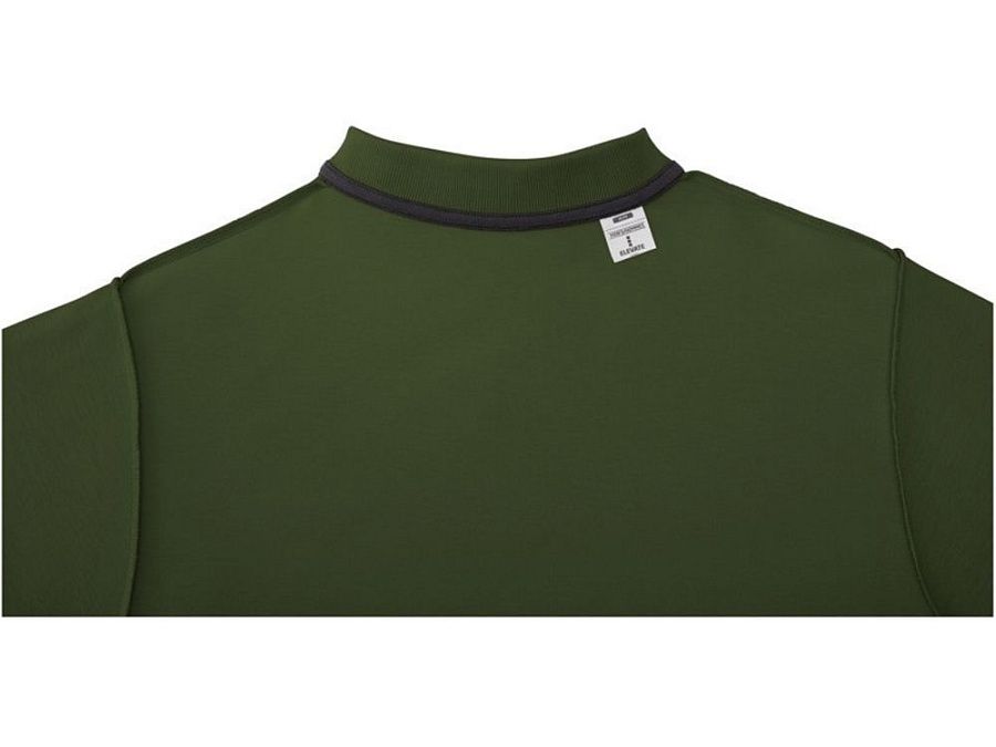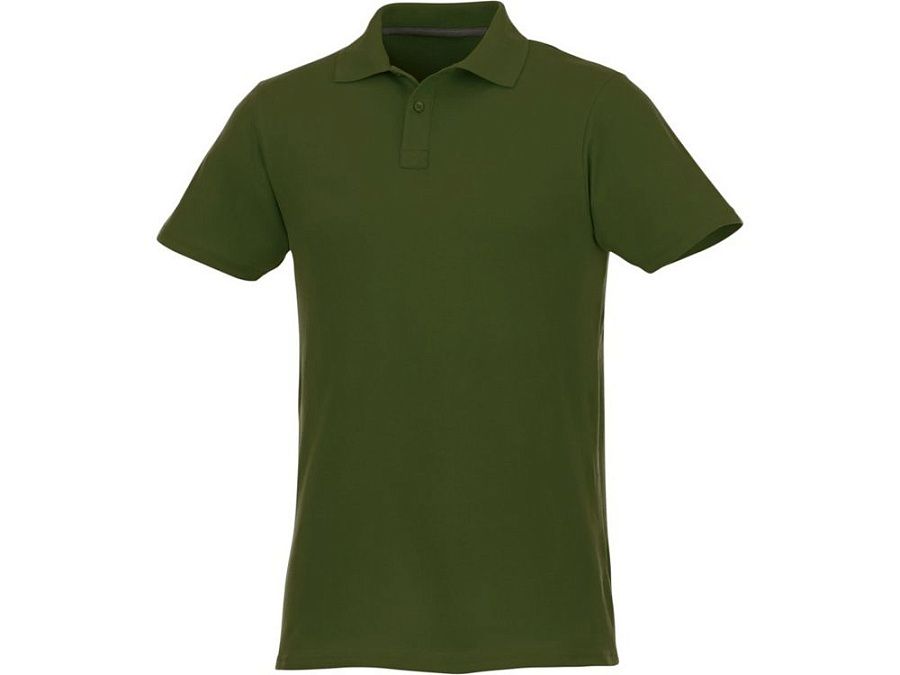 Мужское поло Helios с коротким рукавом. Отрезной-отрывной ярлык для комфорта. Воротник гладкой вязкой в рубчик. Планка с двумя пуговицами. Двойная строчка на воротнике и внизу изделия. Пуговицы в цвет изделия. Полоска на горловине в контрастном цвете. Трикотаж Piqué, 100 % хлопок. 180 г/м².