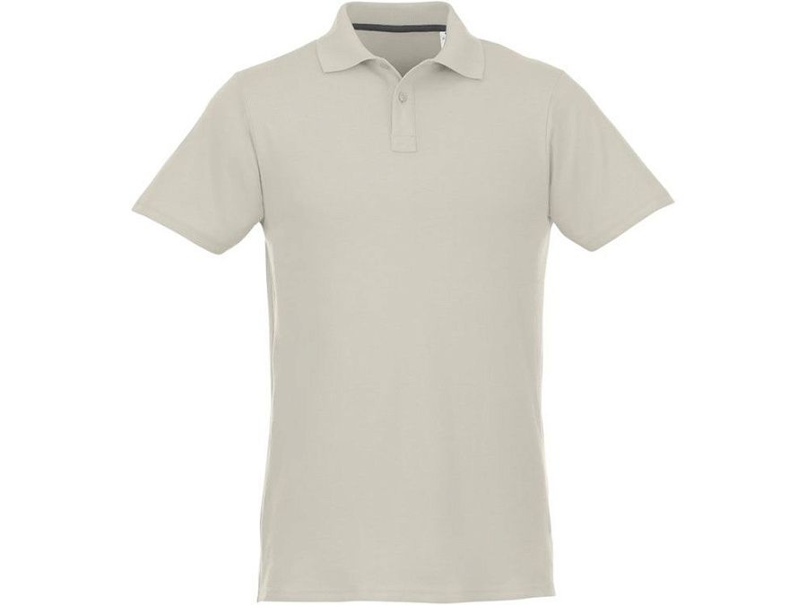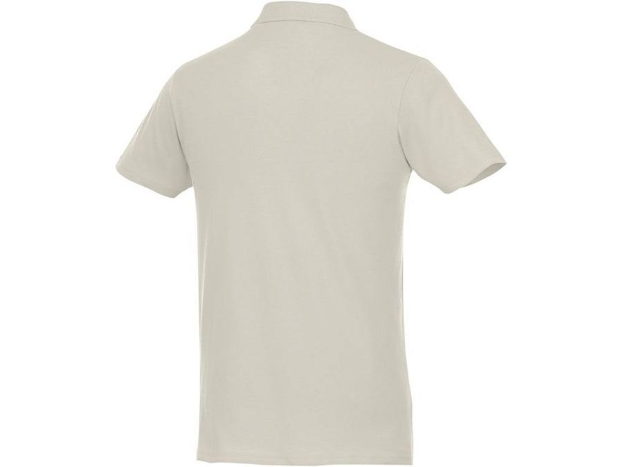 Мужское поло Helios с коротким рукавом. Отрезной-отрывной ярлык для комфорта. Воротник гладкой вязкой в рубчик. Планка с двумя пуговицами. Двойная строчка на воротнике и внизу изделия. Пуговицы в цвет изделия. Полоска на горловине в контрастном цвете. Трикотаж Piqué, 100 % хлопок. 180 г/м².