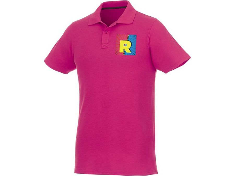 Мужское поло Helios с коротким рукавом. Отрезной-отрывной ярлык для комфорта. Воротник гладкой вязкой в рубчик. Планка с двумя пуговицами. Двойная строчка на воротнике и внизу изделия. Пуговицы в цвет изделия. Полоска на горловине в контрастном цвете. Трикотаж Piqué, 100 % хлопок. 180 г/м².