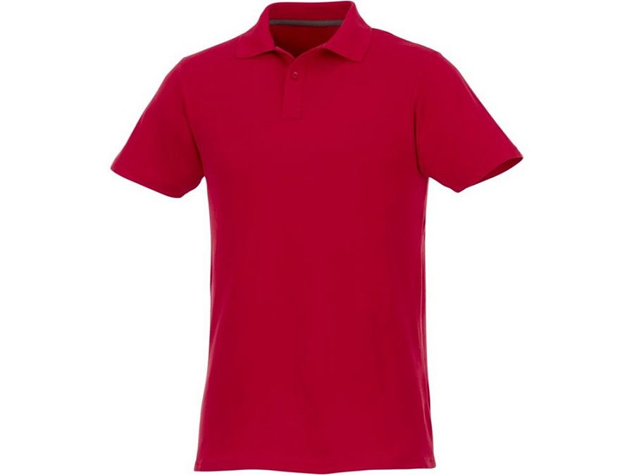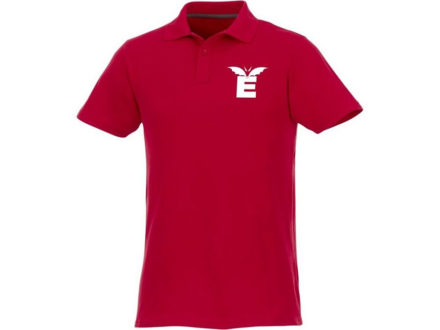Мужское поло Helios с коротким рукавом. Отрезной-отрывной ярлык для комфорта. Воротник гладкой вязкой в рубчик. Планка с двумя пуговицами. Двойная строчка на воротнике и внизу изделия. Пуговицы в цвет изделия. Полоска на горловине в контрастном цвете. Трикотаж Piqué, 100 % хлопок. 180 г/м².