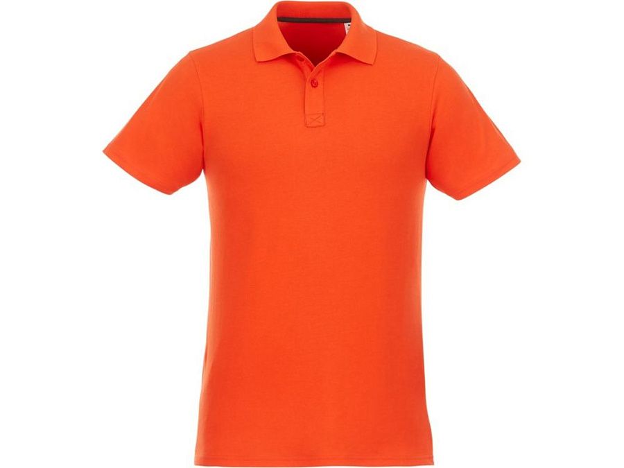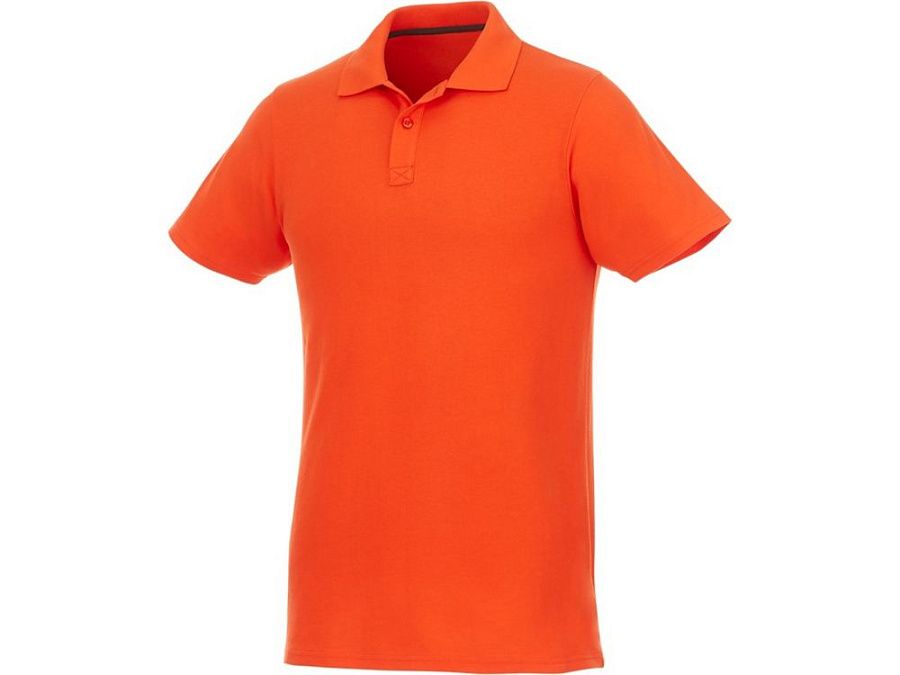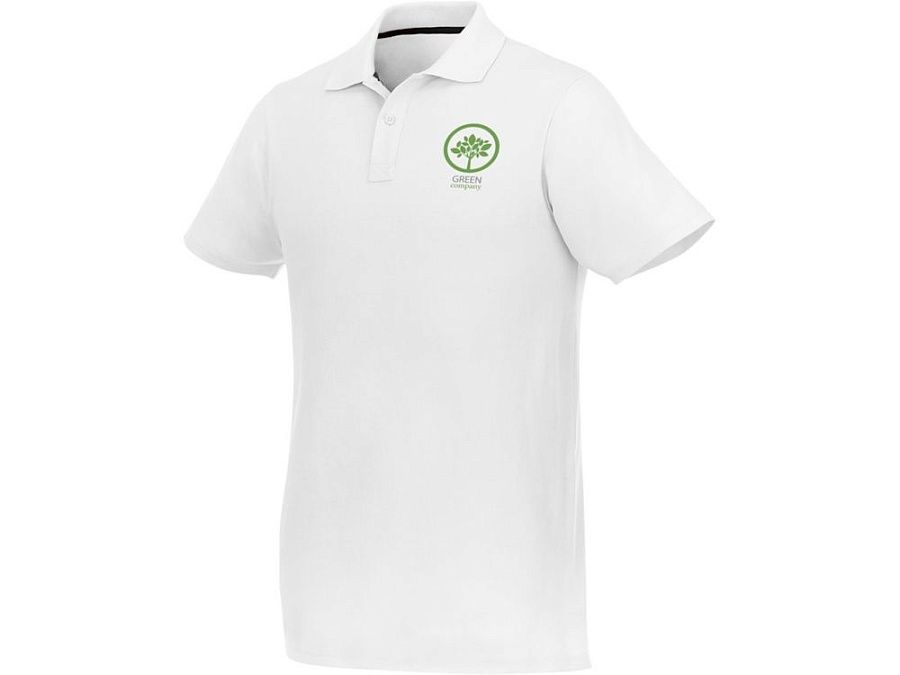 Мужское поло Helios с коротким рукавом. Отрезной-отрывной ярлык для комфорта. Воротник гладкой вязкой в рубчик. Планка с двумя пуговицами. Двойная строчка на воротнике и внизу изделия. Пуговицы в цвет изделия. Полоска на горловине в контрастном цвете. Трикотаж Piqué, 100 % хлопок. 180 г/м².