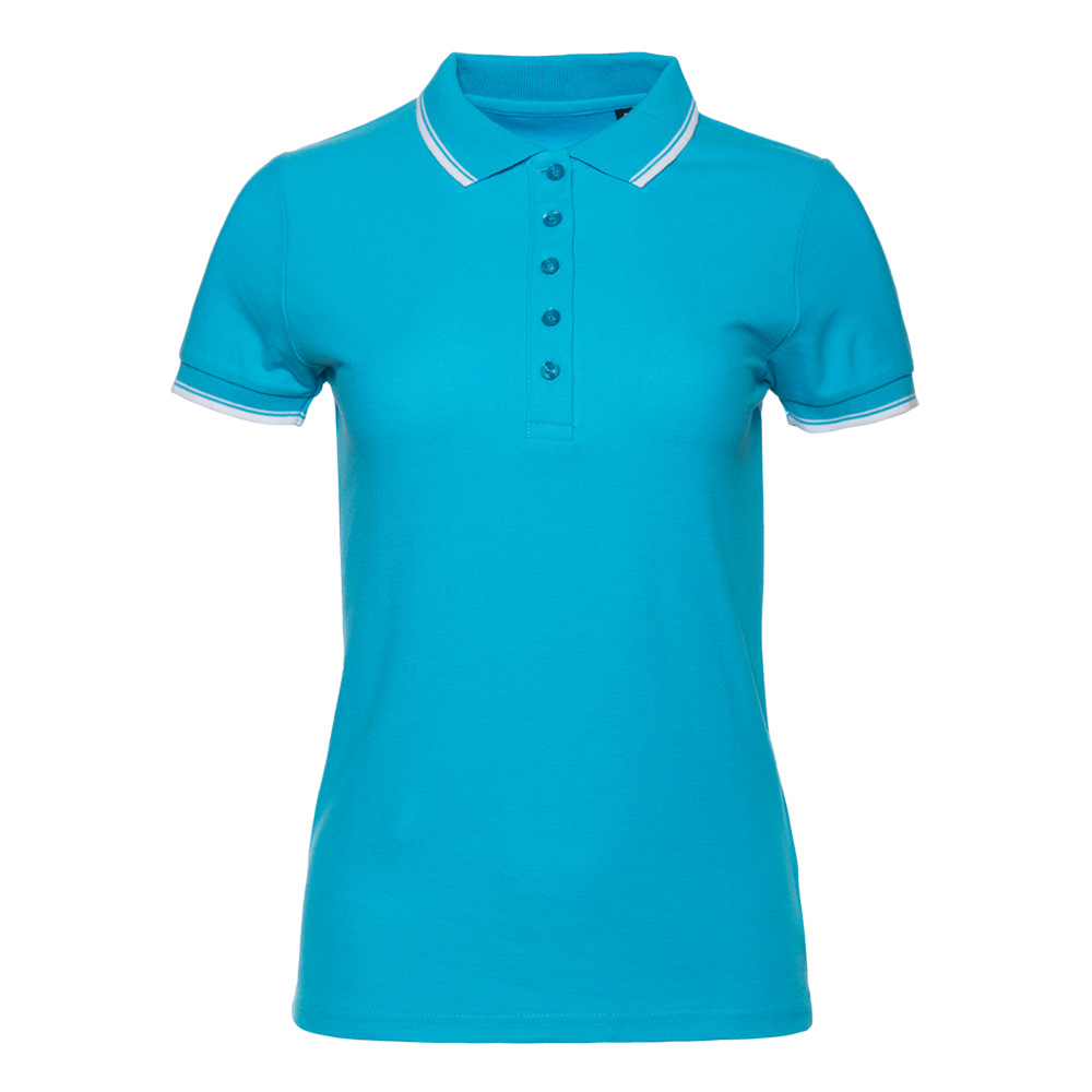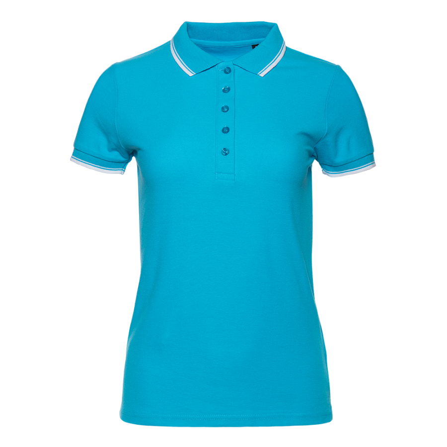 Женское поло приталенного силуэта с отложным воротником, втачным коротким рукавом и застежкой на пуговицы. Воротник и манжет выполнены контрастной резинкой.
