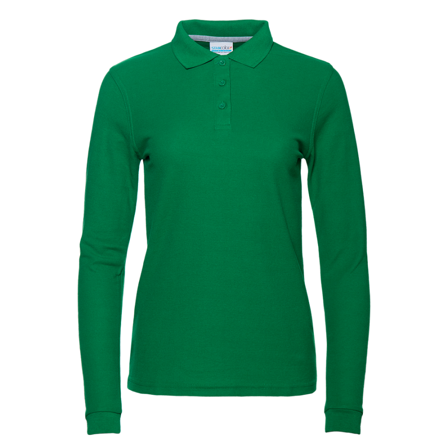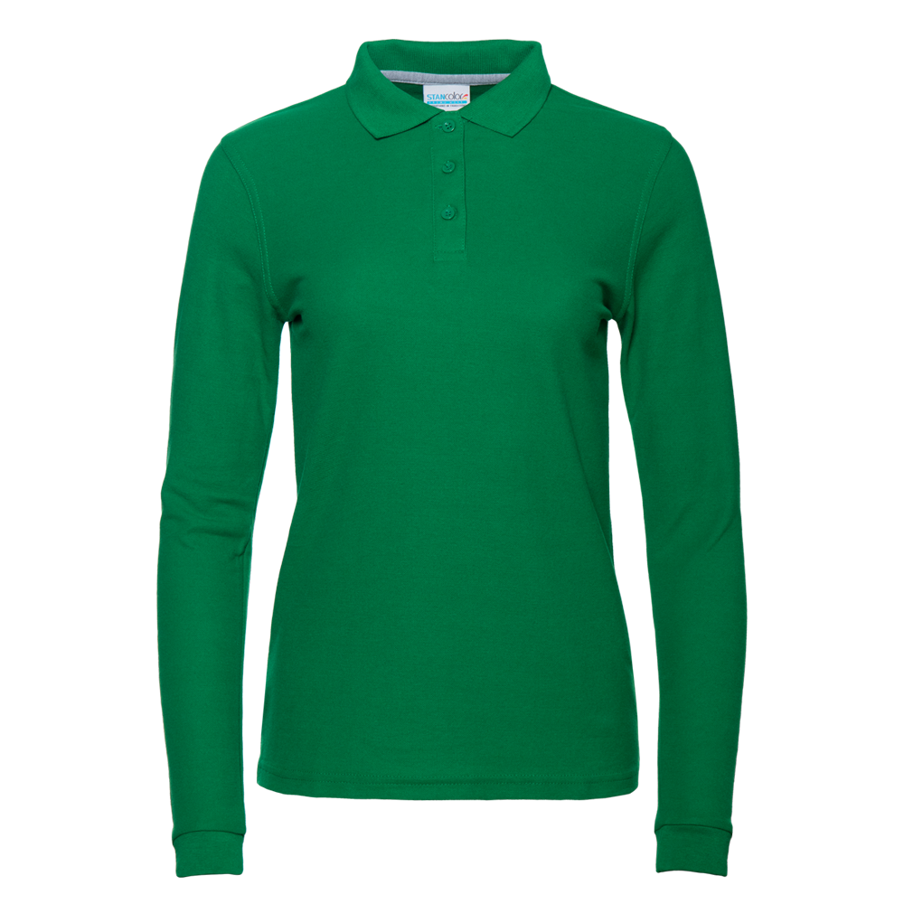 Женская рубашка поло приталенного силуэта с отложным воротником, длинным рукавом и застежкой на пуговицы.