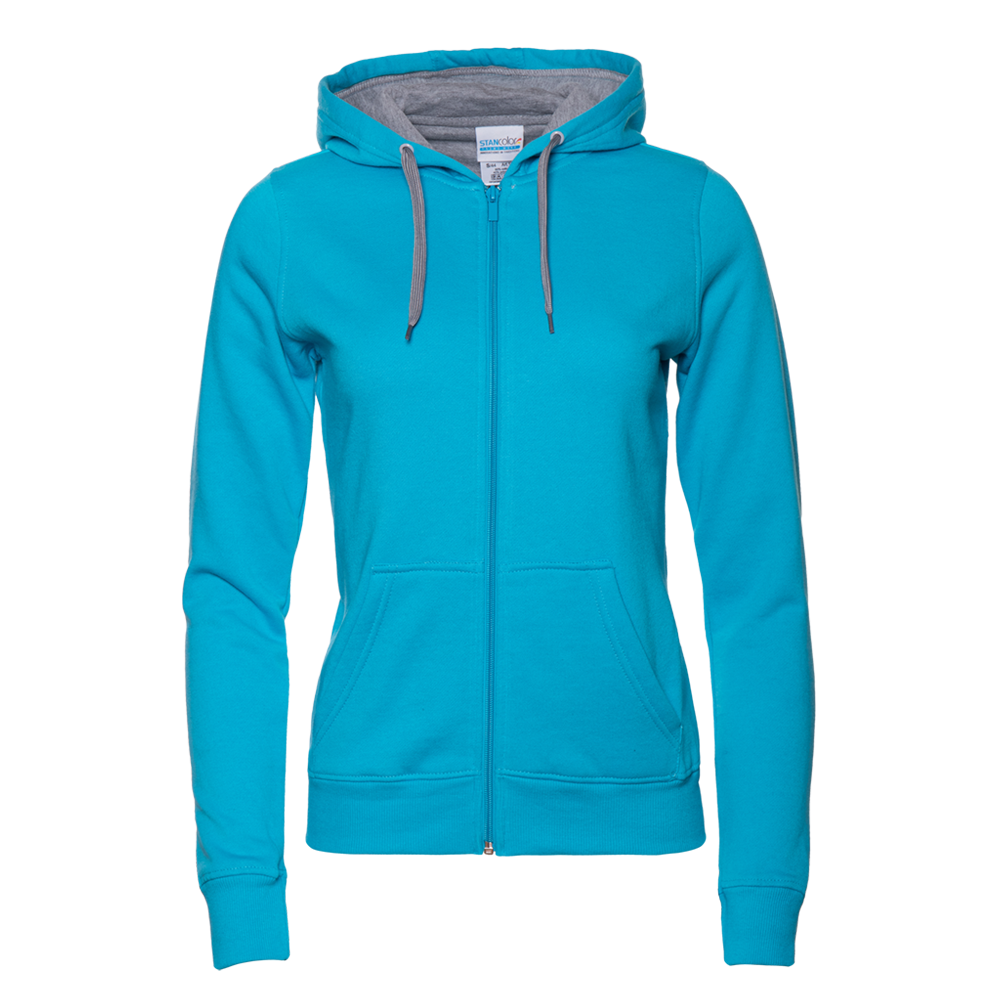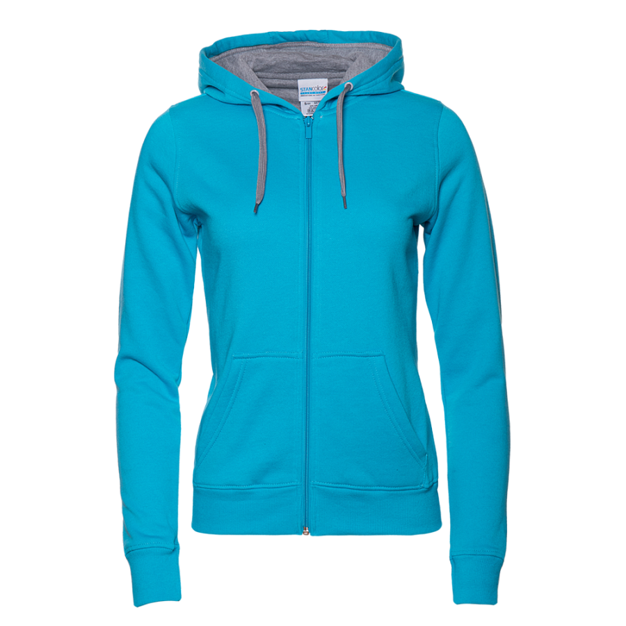 Женская толстовка приталенного кроя с капюшоном комфортной глубины, втачным рукавом, накладным карманом и застежкой на молнию в тон основному цвету. Для дополнительной защиты от холода ворот, манжет и низ изделия оформлены эластичной бейкой.