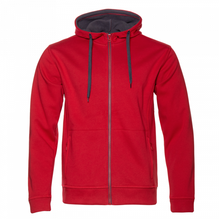 Мужская толстовка прямого силуэта с капюшоном комфортной глубины, втачным рукавом, прорезным карманов и застежкой на контрастную молнию. Капюшон дополнен плоским шнурком для регулировки прилегания, манжет и низ изделия выполнены из основного полотна.