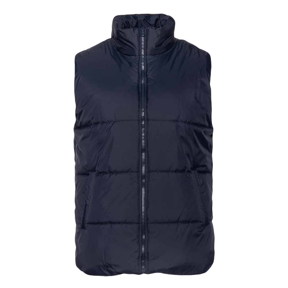 Универсальный жилет прямого силуэта с широкой горизонтальной стежкой, высоким воротником-стойкой, глубоким прорезным карманом и застежкой на молнию. Благодаря классическому лаконичному крою модель станет стильным дополнением как к мужскому, так и к женскому гардеробу.