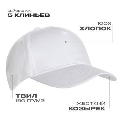 Для изготовления бейсболки использовали плотный хлопковый твил, благодаря которому изделие защитит от непогоды и надолго сохранит форму.