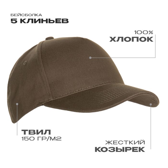 Для изготовления бейсболки использовали плотный хлопковый твил, благодаря которому изделие защитит от непогоды и надолго сохранит форму.