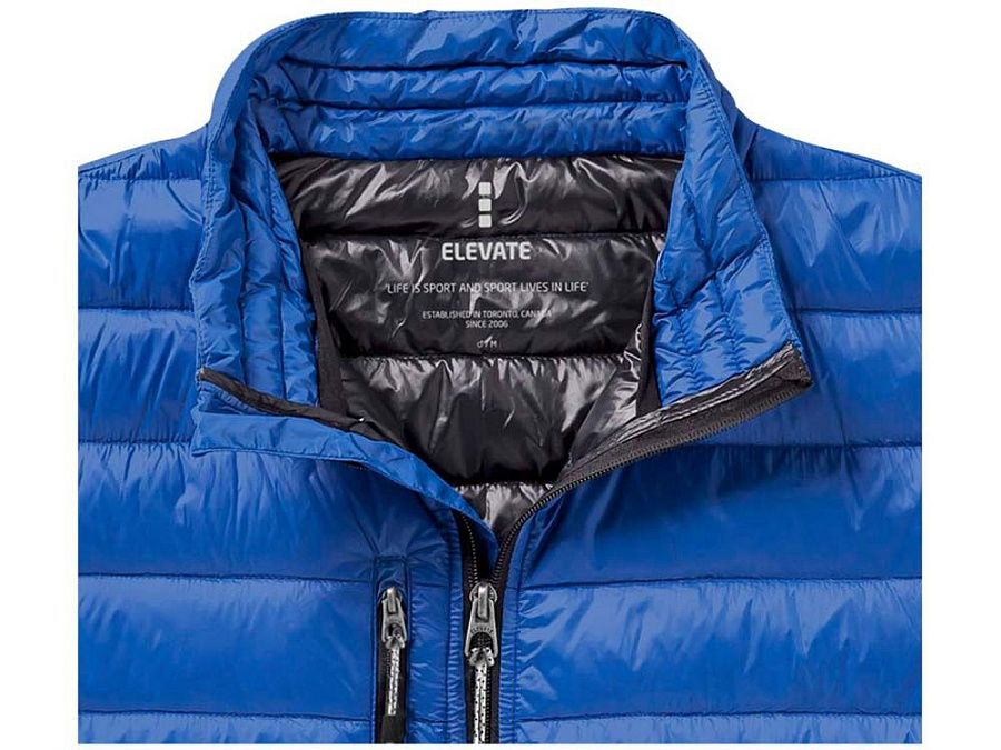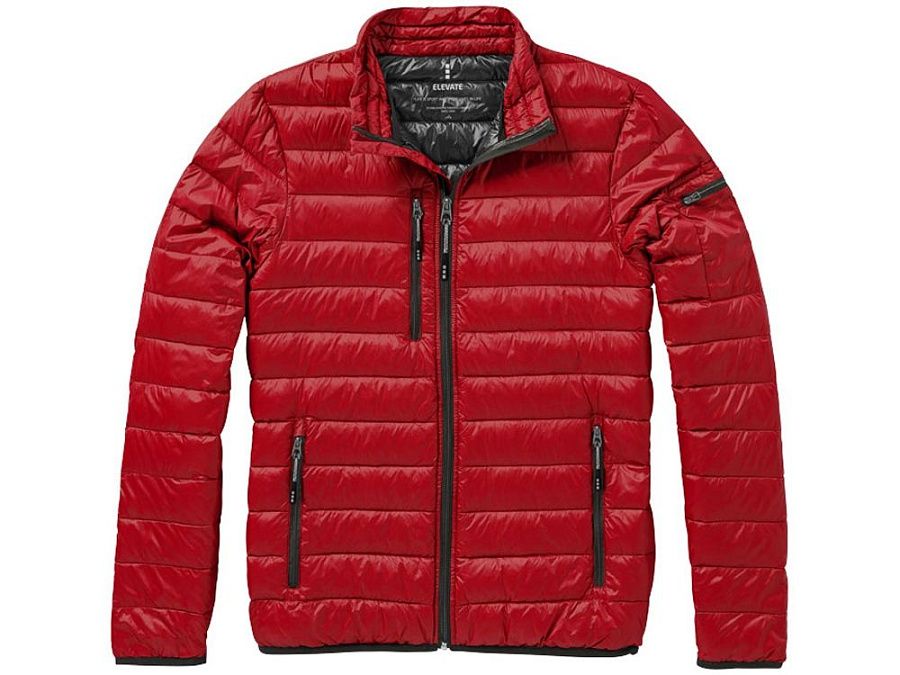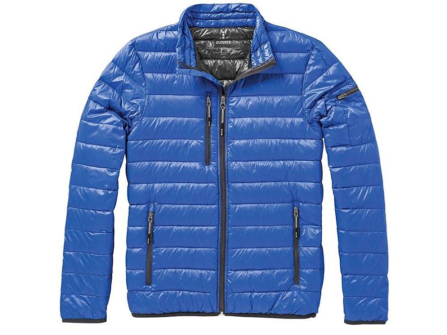 Легкая куртка Scotia. Стандартный покрой. Ткань не пропускает пух. Карманы для рук и нагрудный на молнии. Карман на рукаве на молнии можно использовать для нанесения. Резинка на манжетах и внизу куртки. Ремешки на собачку (второй комплект в цвете антрацит). Внутренний противоветровой клапан и защита подбородка. Ткань дышащая, ветронепроницаемая и влагоотталкивающая. Отражающий лого сзади. Легкий пуховик. Ткань из 100% нейлона с матовым и блестящим водоотталкивающим покрытием, 20D. 80% пух и 20% перо. 115 г/м².