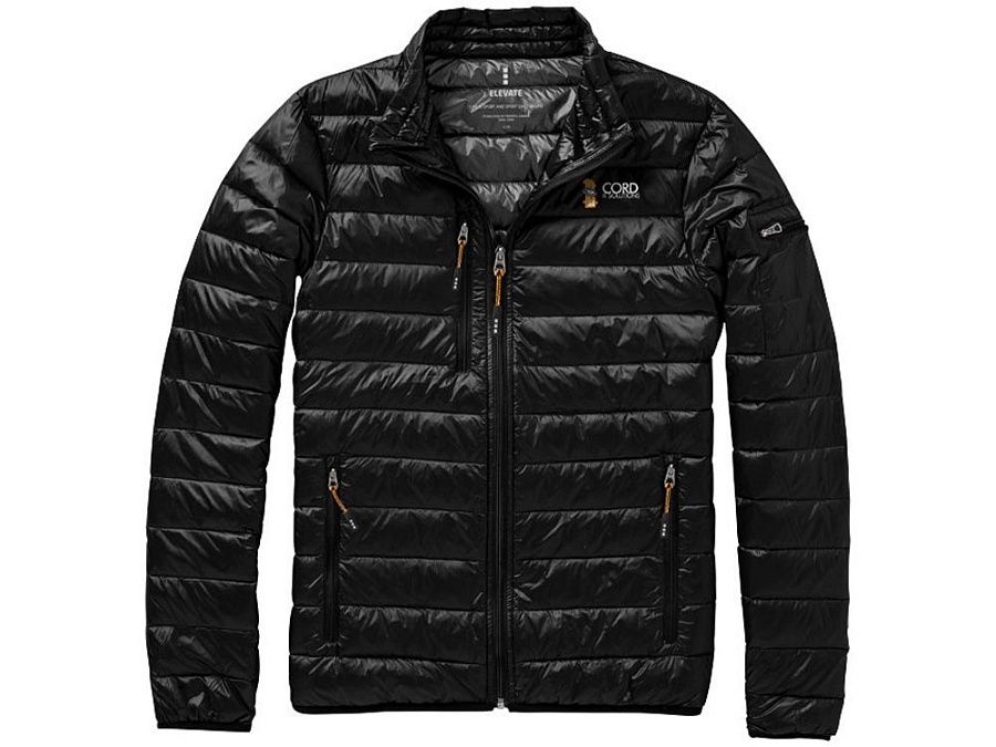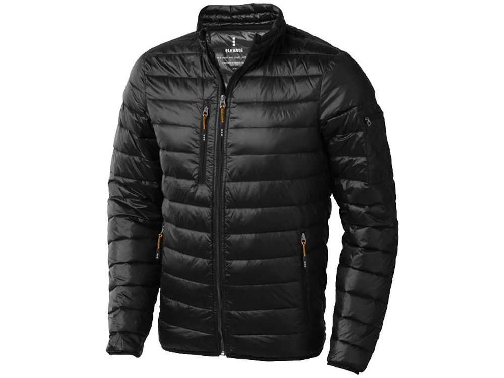 Легкая куртка Scotia. Стандартный покрой. Ткань не пропускает пух. Карманы для рук и нагрудный на молнии. Карман на рукаве на молнии можно использовать для нанесения. Резинка на манжетах и внизу куртки. Ремешки на собачку (второй комплект в цвете антрацит). Внутренний противоветровой клапан и защита подбородка. Ткань дышащая, ветронепроницаемая и влагоотталкивающая. Отражающий лого сзади. Легкий пуховик. Ткань из 100% нейлона с матовым и блестящим водоотталкивающим покрытием, 20D. 80% пух и 20% перо. 115 г/м².