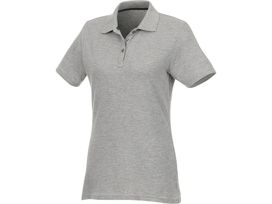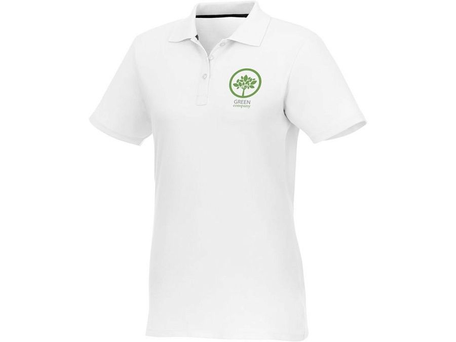 Женское поло Helios с коротким рукавом. Женская модель с разрезами по бокам. Отрезной-отрывной ярлык для комфорта. Воротник гладкой вязкой в рубчик. Планка с тремя пуговицами. Двойная строчка на воротнике и внизу изделия. Пуговицы в цвет изделия. Полоска на горловине в контрастном цвете. Трикотаж Piqué, 100 % хлопок. 180 г/м².