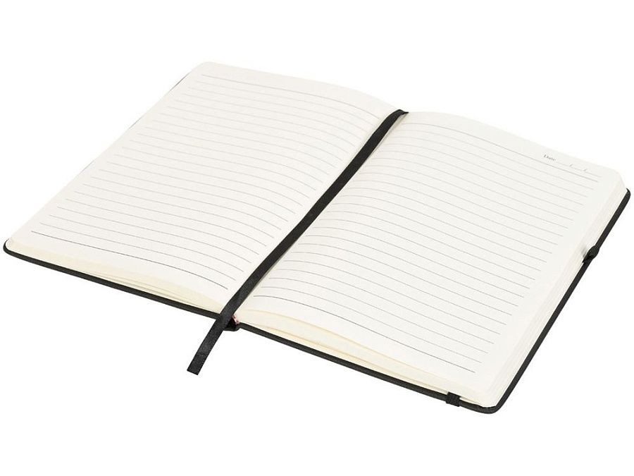 Блокнот Rivista среднего размера. Блокнот Rivista отличается стильным современным дизайном с высококачественной обложкой, идеально подходящей для нанесения логотипа и информации вашей компании. Предлагаются современные цвета. Также предусмотрена эластичная застежка, держатель для ручки, лента-закладка и внутренний кармашек на задней стороне обложки. Содержит 128 листов линованной бумаги (70 г/м²) кремового цвета. ПУ.