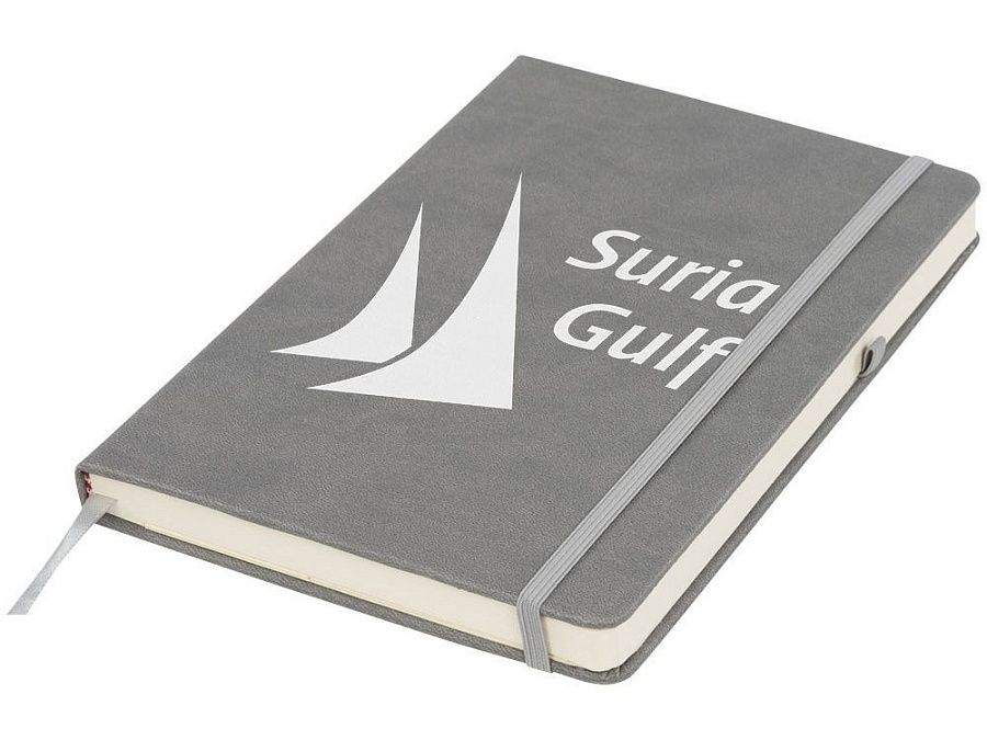 Блокнот Rivista среднего размера. Блокнот Rivista отличается стильным современным дизайном с высококачественной обложкой, идеально подходящей для нанесения логотипа и информации вашей компании. Предлагаются современные цвета. Также предусмотрена эластичная застежка, держатель для ручки, лента-закладка и внутренний кармашек на задней стороне обложки. Содержит 128 листов линованной бумаги (70 г/м²) кремового цвета. ПУ.