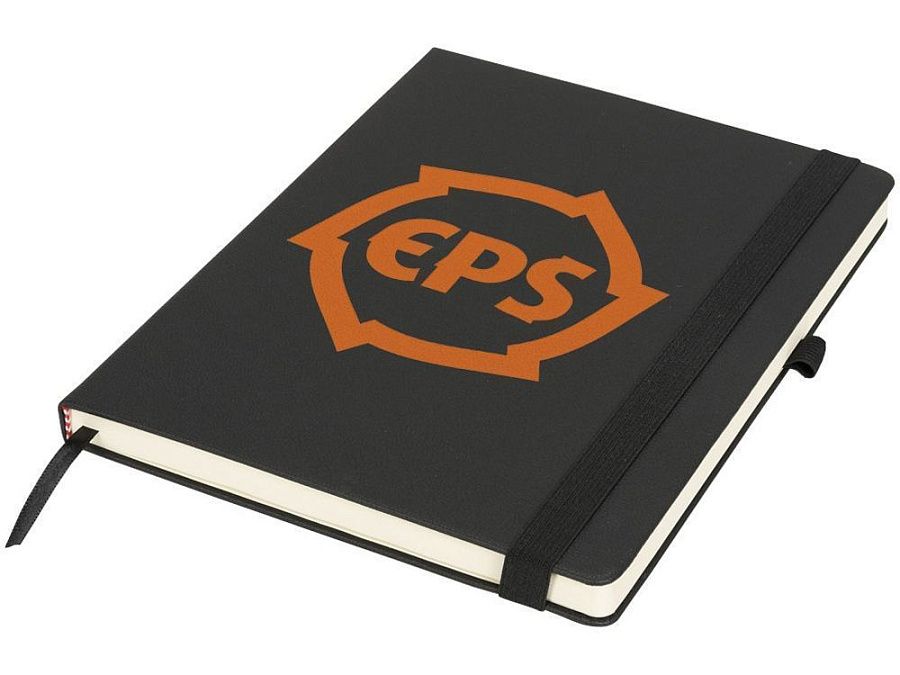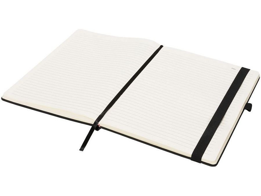 Блокнот Rivista среднего размера. Блокнот Rivista отличается стильным современным дизайном с высококачественной обложкой, идеально подходящей для нанесения логотипа и информации вашей компании. Предлагаются современные цвета. Также предусмотрена эластичная застежка, держатель для ручки, лента-закладка и внутренний кармашек на задней стороне обложки. Содержит 128 листов линованной бумаги (70 г/м²) кремового цвета. ПУ.