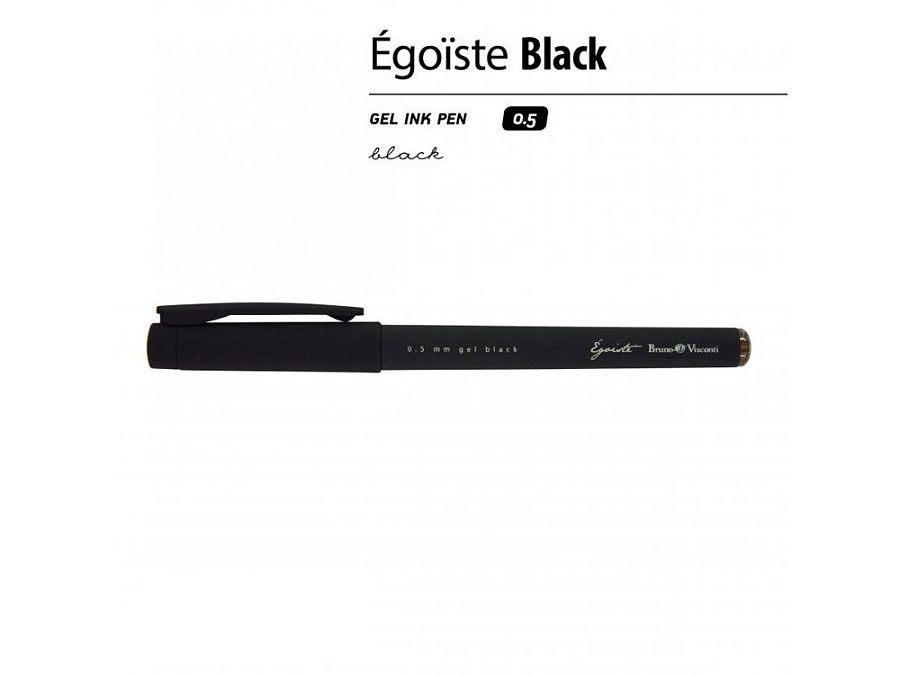 Линия гелевых ручек Egoiste выпускается в эргономичных округлых корпусах утолщенного диаметра. Современное антискользящее покрытие черного корпуса на ощупь напоминает прорезиненные поверхности или карбон. Повышенная прочность достигается за счет металлизированного наконечника, в котором закреплен пишущий узел Premec (Швейцария) толщиной 0,5 мм. В стержнях использованы японские чернила Mikuni синего цвета.