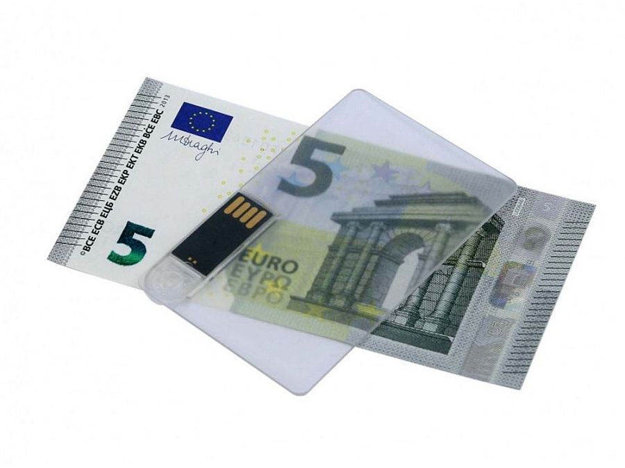 Флеш-накопитель в виде прозрачной пластиковой карты., объем памяти 8 Гб. Пластиковый корпус.