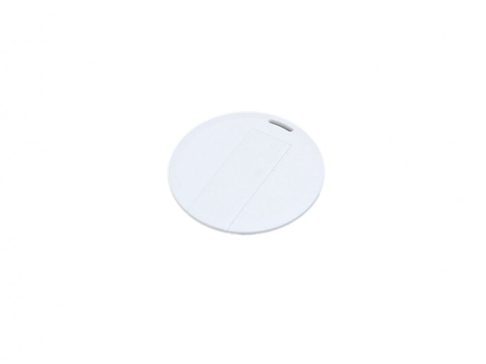 Флеш-накопитель в виде круга малого размера., объем памяти 8 Гб. Пластиковый корпус.