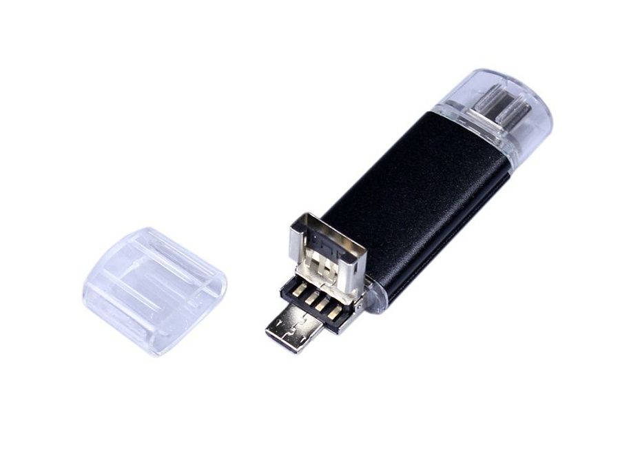 Флеш-накопитель c двумя дополнительными разъемом Micro USB и TypeC, металлический корпус., объем памяти 64 ГБ. Металлический корпус.
