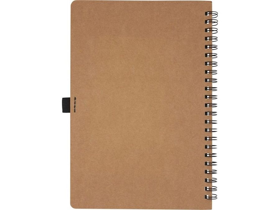Блокнот на пружине формата A5, изготовленный из переработанного картона, с петлей для ручки. Содержит 70 листов в линию плотностью 60 г/м², изготовленных из каменной бумаги. В производстве каменной бумаги не используется дерево, а на сам процесс изготовления затрачивается гораздо меньше энергии в сравнении с производством переработанной или целлюлозной бумаги. Бумага водонепроницаемая и стойкая на разрыв. Имеет естественный белый цвет (без отбеливания).