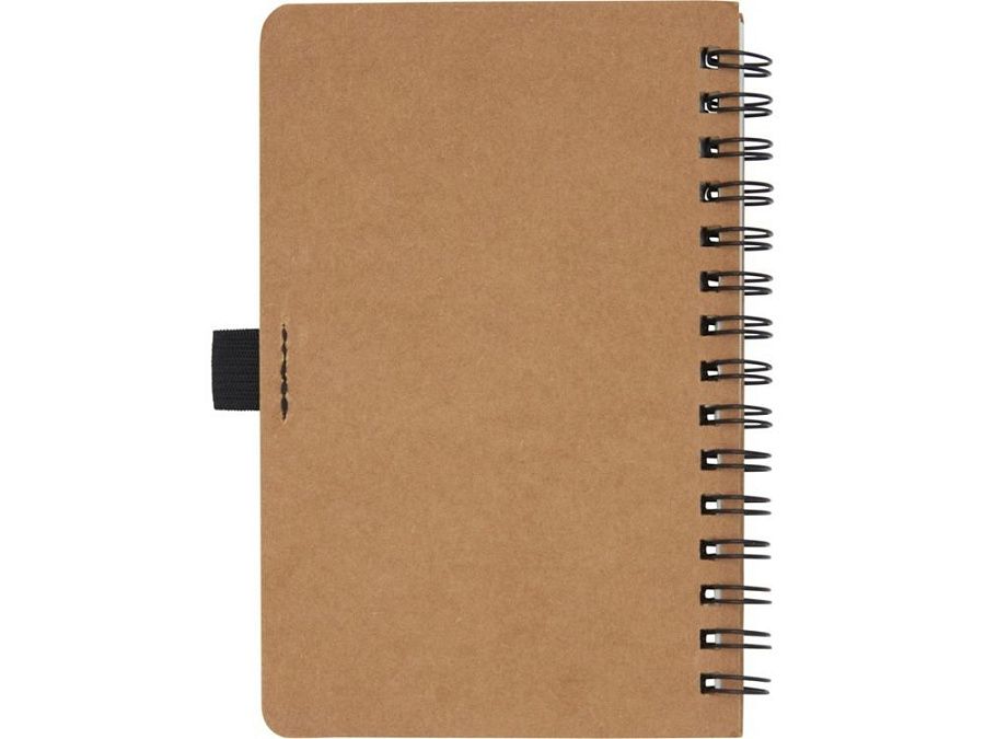 Блокнот на пружине формата A5, изготовленный из переработанного картона, с петлей для ручки. Содержит 70 листов в линию плотностью 60 г/м², изготовленных из каменной бумаги. В производстве каменной бумаги не используется дерево, а на сам процесс изготовления затрачивается гораздо меньше энергии в сравнении с производством переработанной или целлюлозной бумаги. Бумага водонепроницаемая и стойкая на разрыв. Имеет естественный белый цвет (без отбеливания).