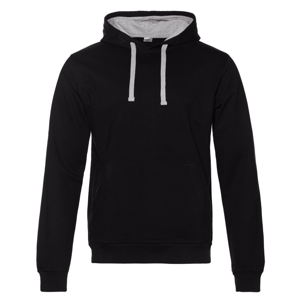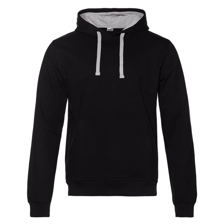 Толстовка прямого силуэта с капюшоном, втачным рукавом и карманом-кенгуру. Капюшон дополнен шнурком для регулирования прилегания, манжет и низ изделия оформлены широкой эластичной резинкой. Возможно два варианта исполнения: контрастные шнурок и бейка/шнурок и бейка в цвет толстовки.