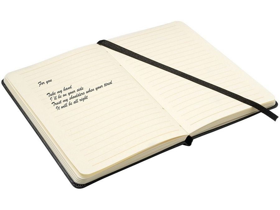 Классический офисный блокнот. Эксклюзивный классический блокнот в твердой обложке (размера А5) с эластичной застежкой и 80 листами линованной бумаги (80 г/м²), идеально подходящий для записей и заметок. Дополнительный кармашек сзади для небольших заметок.