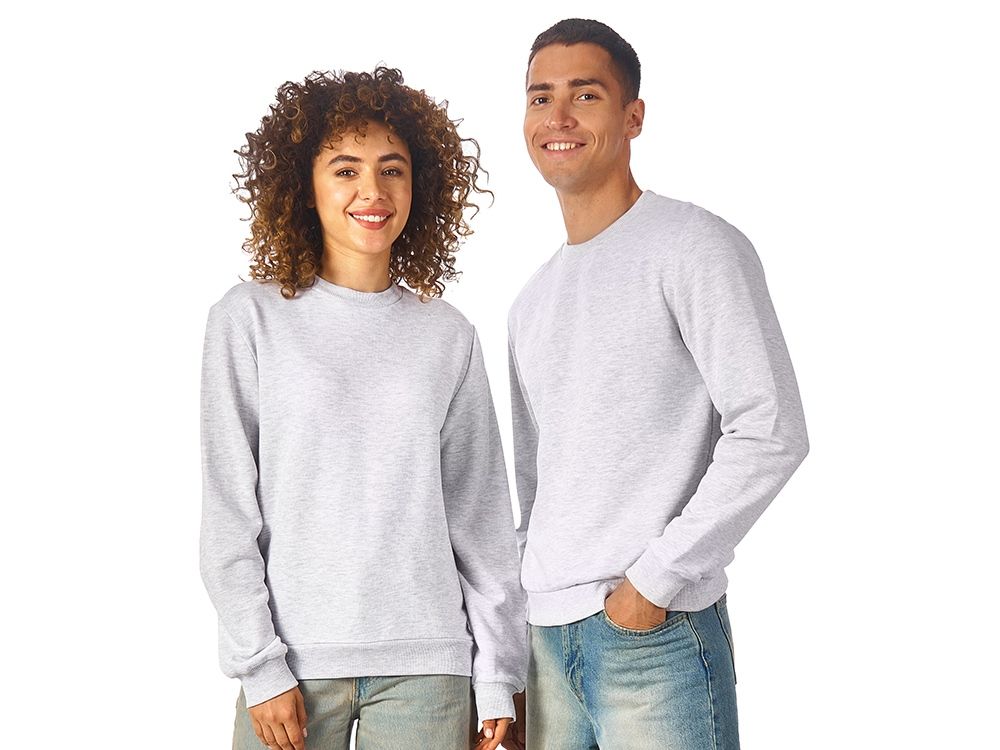 Свитшот из плотного 3х ниточного хлопкового футера. Горловина, манжеты и низ отделан рибом 2х2. Горловина спинки внутри дополнительно укреплена тесьмой с выработкой елочка. Полотно из утяжеленного хлопкового футера внутри с петельками без начеса.