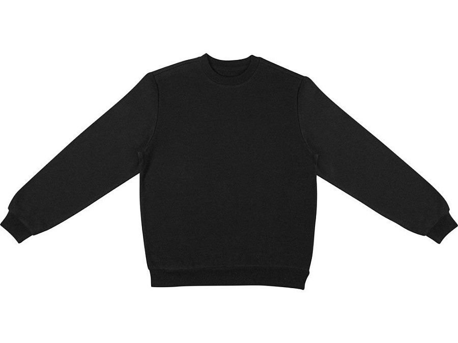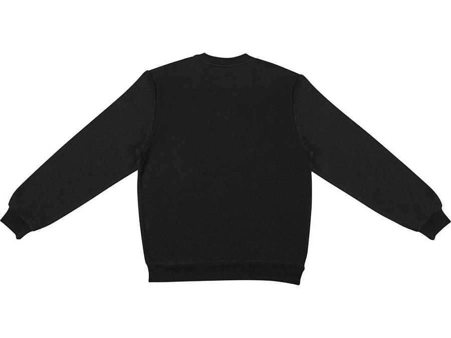 Свитшот из плотного 3х ниточного хлопкового футера. Горловина, манжеты и низ отделан рибом 2х2. Горловина спинки внутри дополнительно укреплена тесьмой с выработкой елочка. Полотно из утяжеленного хлопкового футера внутри с петельками без начеса.
