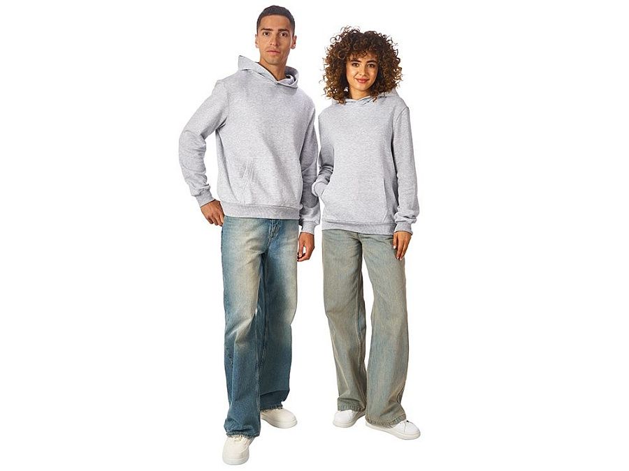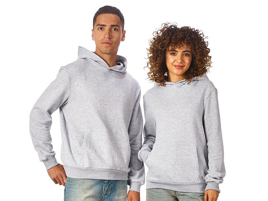 Толстовка с капюшоном (худи) из плотного хлопкового 3х ниточного футера. В капюшоне подкладка в тон, а горловина спинки дополнительно укреплена тесьмой с выделкой «елочка». Капюшон без шнурков – ничего не отвлекает от вашего брендирования. Манжеты и низ изделия отделаны рибом 2х2. Глубокий комфортный карман кенгуру на полочке. Полотно из утяжеленного хлопкового футера внутри с петельками без начеса.