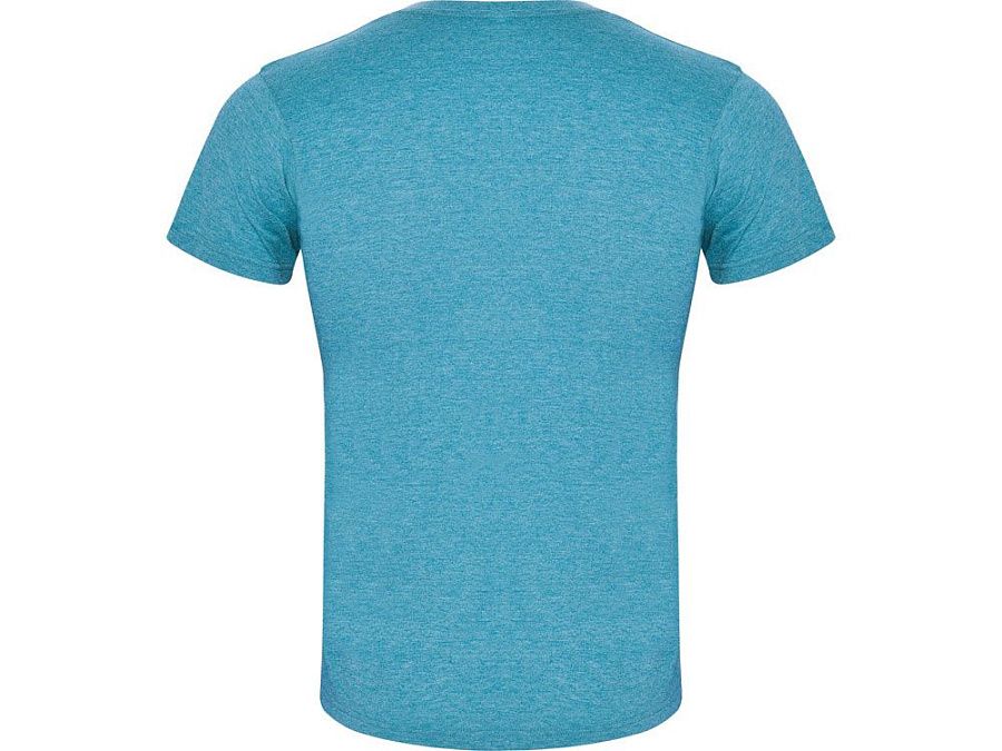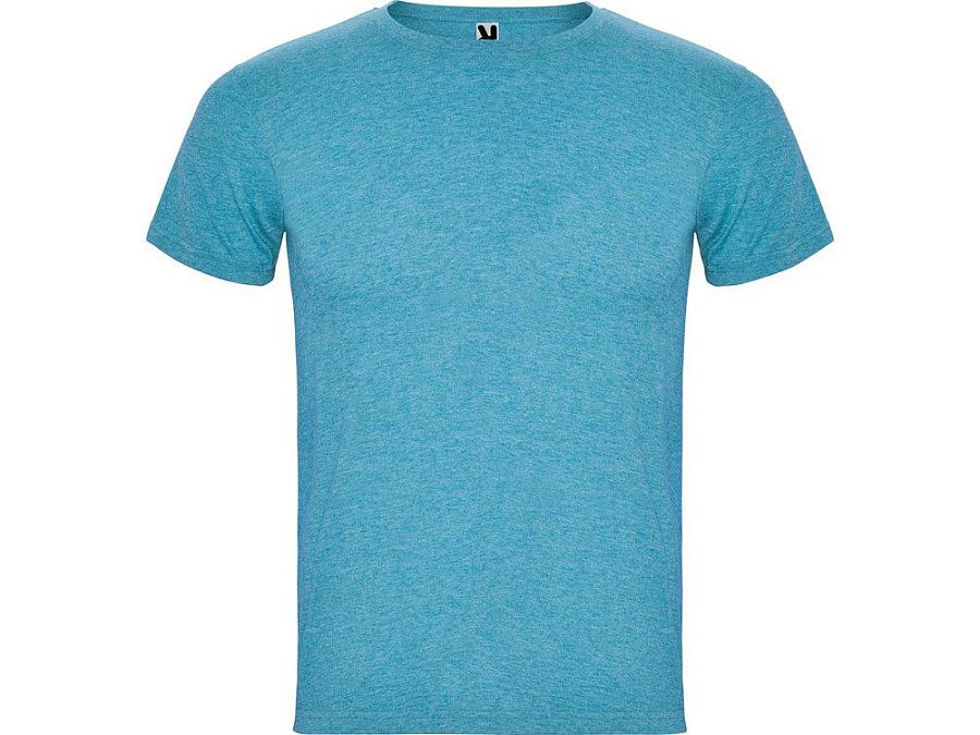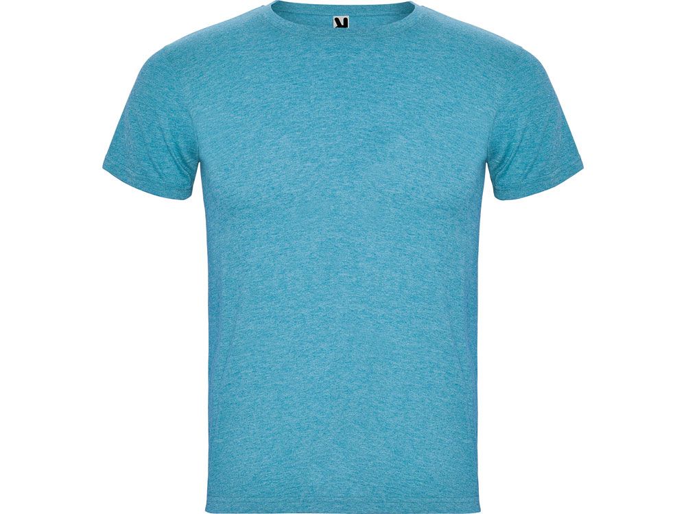 Футболка без боковых швов с коротким рукавом в меланжевом эффекте. Риб горловины 1х1 дополнительно укреплен двойной строчкой.