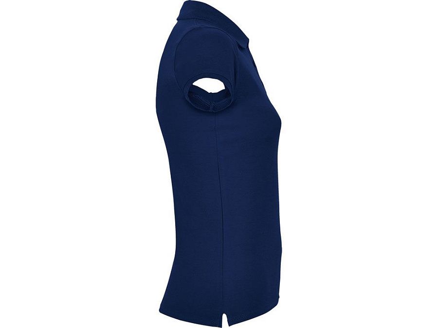 Поло с коротким рукавом для женщин приталенного силуэта. Воротник и манжеты из риба 1х1, отделка горловины внутри тесьмой. Элегантная планка застегивается на 3 пуговицы. Разрезы в боковых швах.