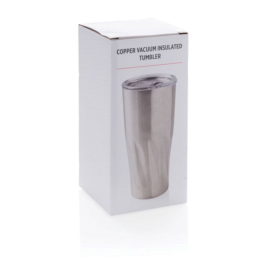 Вакуумная термокружка Copper изготовлена из 304 нержавеющей стали, а ее двойные стенки дополнены медной изоляцией, благодаря чему напиток остается горячим до 8 часов, и холодным - до 24 часов. Конструкция кружки продумана таким образом, чтобы на корпусе не появлялся конденсат. Удобная крышка со сдвижным механизмом не даст напитку расплескаться. Объем кружки составляет 500 мл. Будьте внимательны, кружку можно мыть исключительно вручную. Поставляется в подарочной коробке XD Collection.