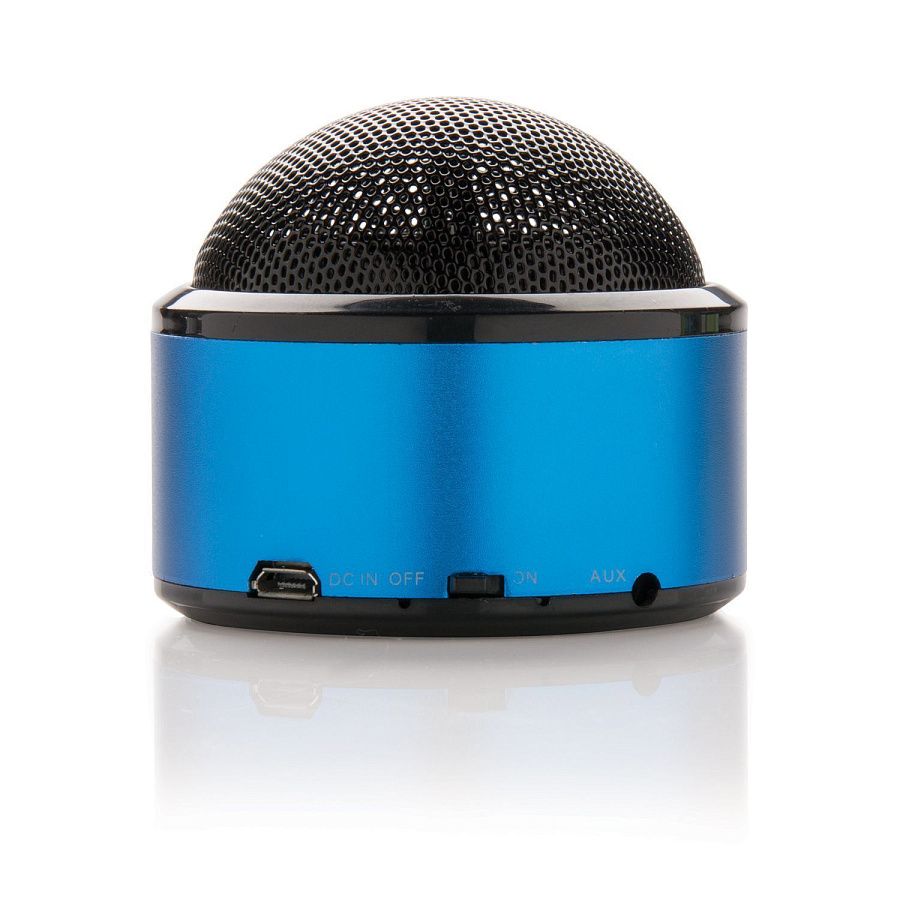 Беспроводная колонка мощностью 3 Вт с аккумулятором емкостью 350 мАч. Продуманный дизайн позволяет звуку распространяться во всех направлениях. Алюминиевый корпус, металлическая решетка, резиновые накладки снизу на корпусе для сцепления с поверхностью и улучшения качества звука. Продолжительность проигрывания – до 3 часов без подзарядки, расстояние от источника сигнала – до 10 м. Поставляется с кабелем для зарядки и аудиокабелем для подключения к телефону. Подходит для всех мобильных телефонов.