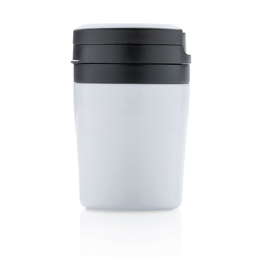 Высота кофейной термокружки Coffee-to-go составляет всего 8 см, поэтому она идеально подойдет для любой кофе-машины. Кружка изготовлена из нержавеющей стали, а удобная ручка, крышка с поворотным механизмом и внутренняя колба - из высококачественного полипропилена. Не подходит для мытья в посудомоечной машине. Объем термокружки составляет 160 мл. Зарегистрированный дизайн®