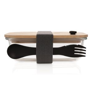 С этим стеклянным контейнером так просто взять с собой любимую домашнюю еду. Благодаря бамбуковой крышке свежесть и польза ингредиентов сохранятся надолго. Контейнер изготовлен из высококачественного боросиликатного стекла, поэтому с легкостью выдерживает большие перепады температуры. В комплекте есть универсальный столовый прибор с 3 функциями: ложки, вилки и ножа.