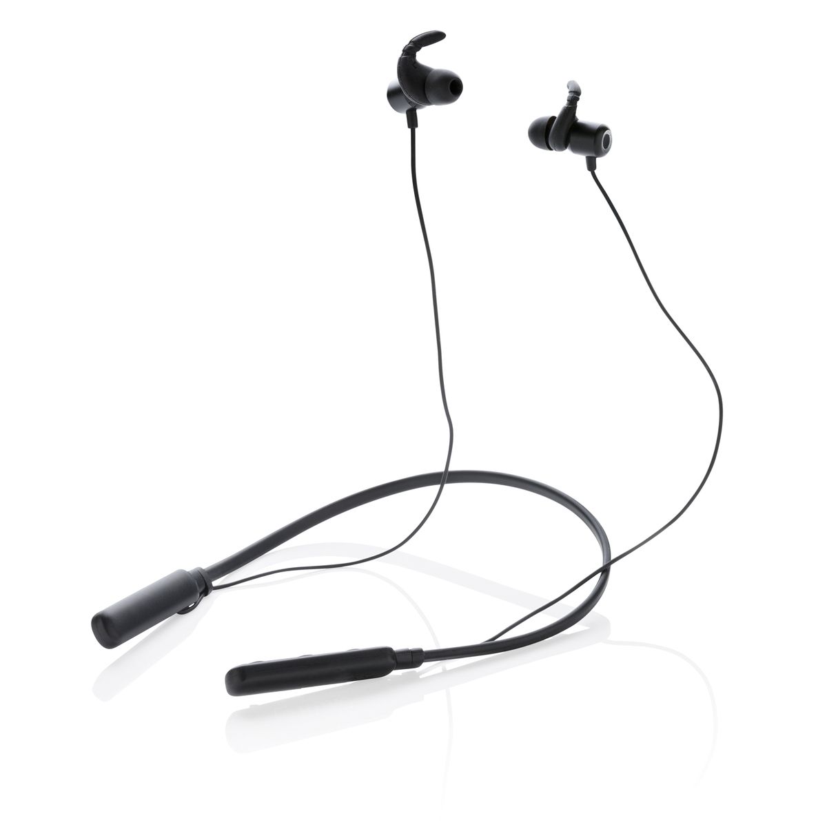 Легкие наушники-вкладыши с магнитными вставками и креплением для шеи, обеспечивающим максимальный комфорт при использовании. Bluetooth версии 4.2 для гладкого подключения с рабочего расстояния 10 метров. Встроенный аккумулятор емкостью 120 мАч позволяет слушать музыку до 6 часов на одном заряде. Корпус из прочного ABS-пластика и полиуретановые подушечки для ушей.