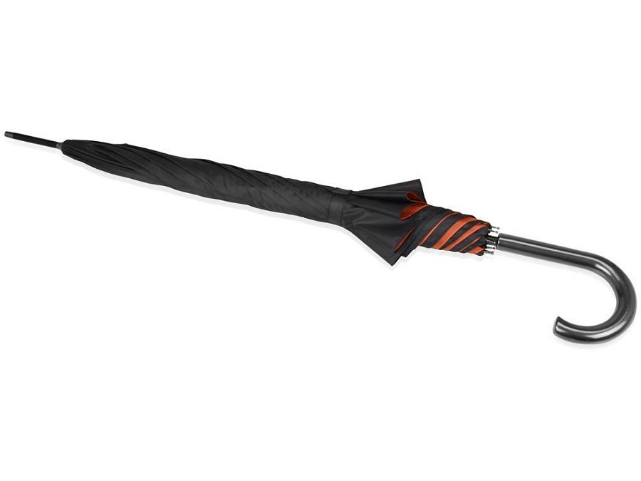 Интересный двухцветный зонт-трость спасет вас от дождя и легкого снега. Внешняя поверхность купола окрашена в черный цвет, а внутренняя имеет яркий, насыщенный оттенок, что непременно привлечет внимание. На купол зонта можно нанести логотип.