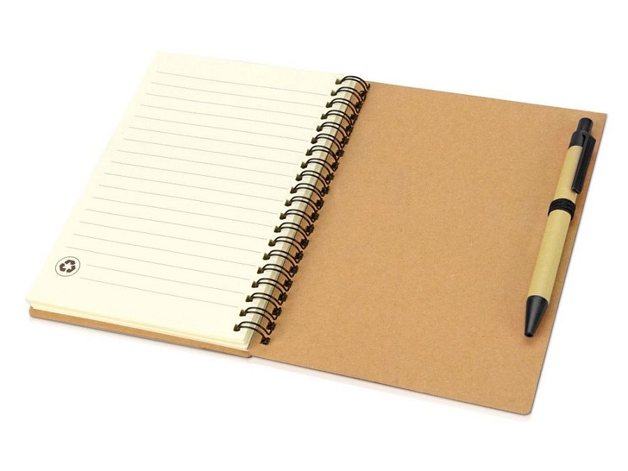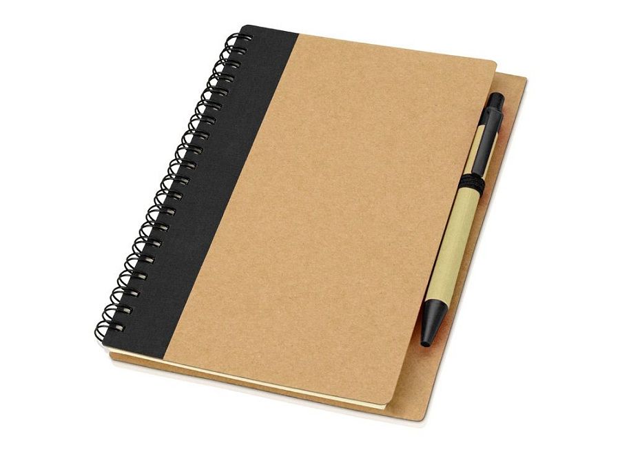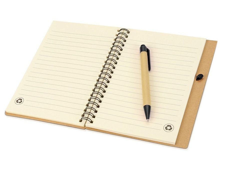 Блокнот Priestly с ручкой. Блокнот с 60 листами линованной бумаги вторичной переработки и ручкой под цвет блокнота. На обложку блокнота и ручку можно нанести яркий логотип.
