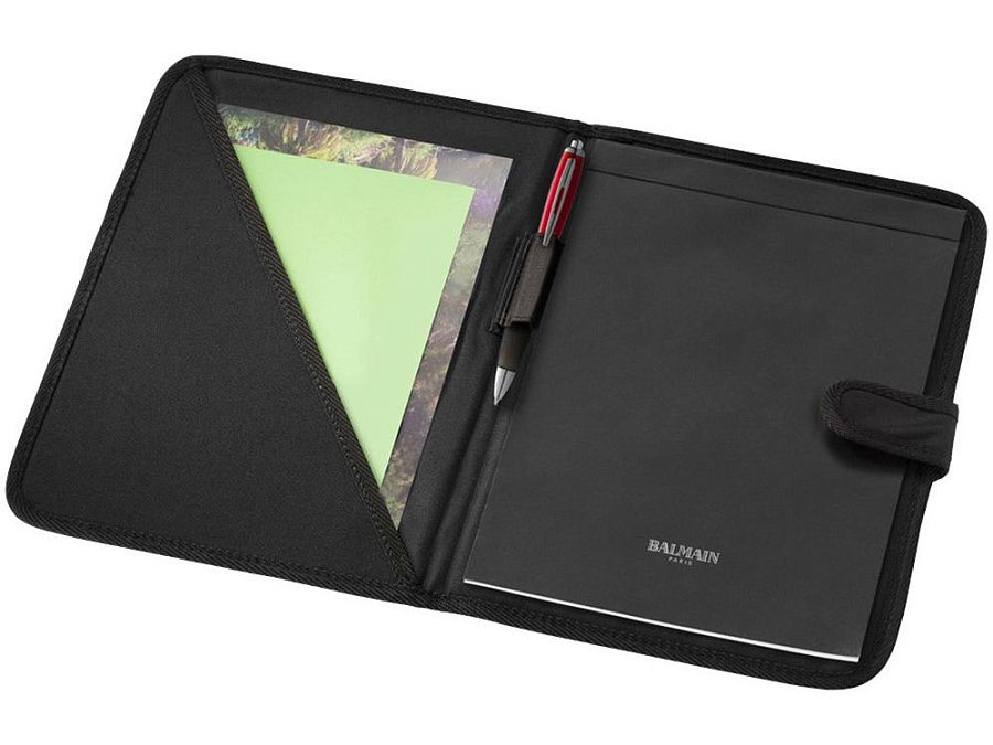 Папка на липучке с держателем для ручки, карманом для документов и блокнотом с 20 страницами линованной бумаги. Ручка и принадлежности не включены.