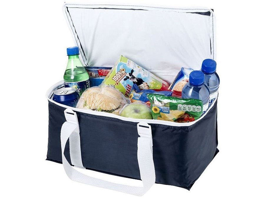 Большая сумка-холодильник на 17л вмещает до 12 банок. Стропу можно использовать для переноски полотенца.