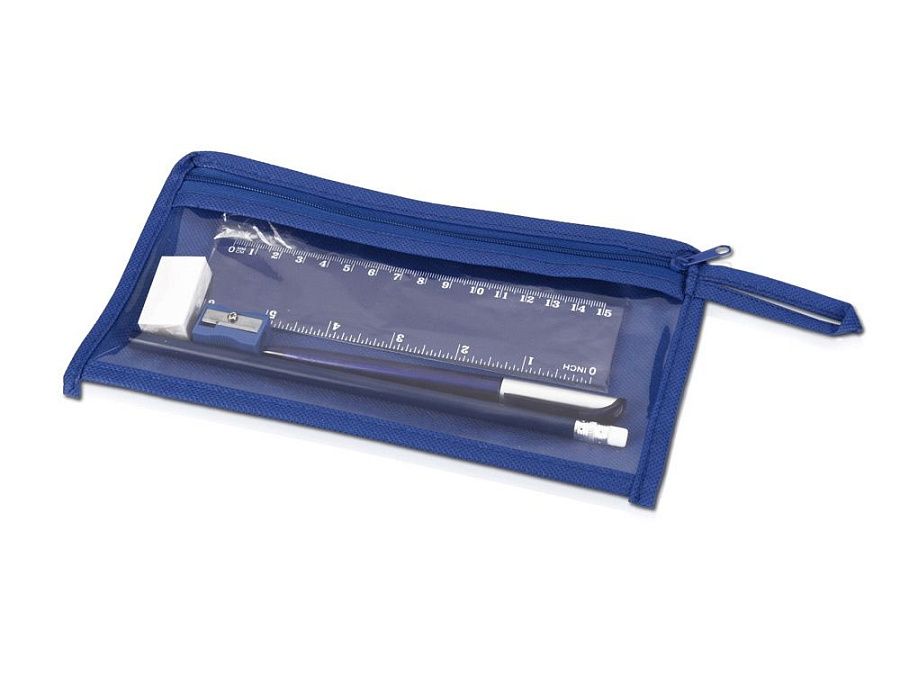 Функциональный и стилистически нейтральный набор канцелярских принадлежностей «Хелла» - это отличный промо-сувенир. В набор входят пластиковый чехол, шариковая ручка, простой карандаш, точилка, линейка и ластик. Материал чехла хорошо подходит для тампопечати или термотрансфера.