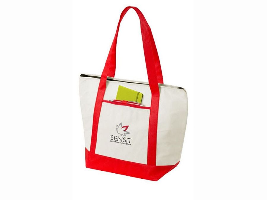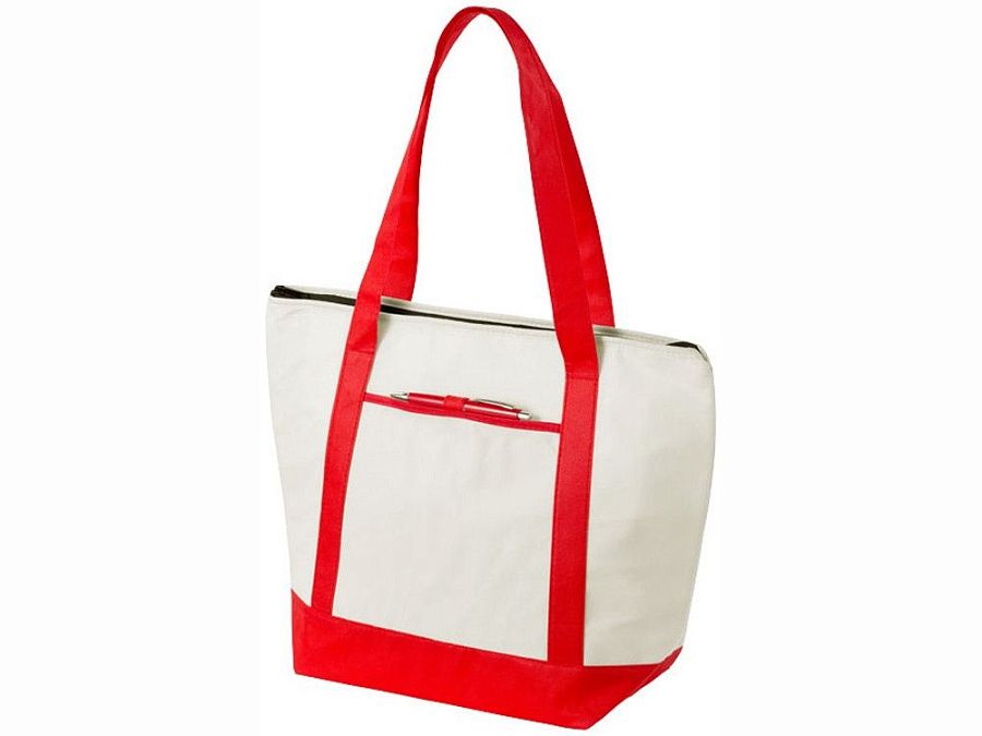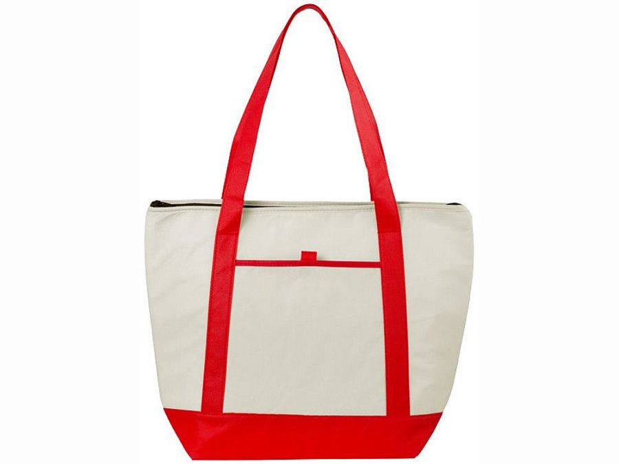 Нетканая сумка-холодильник Lighthouse. Основное отделение на молнии с двойными ручками. Высота ручек 23,5 см. Открытый передний карман с держателем для ручки. Аксессуары не включены. Нетканый полипропилен 80 г/м².