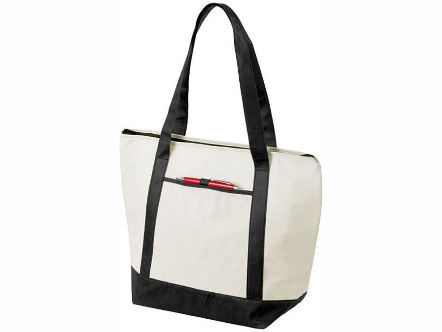 Нетканая сумка-холодильник Lighthouse. Основное отделение на молнии с двойными ручками. Высота ручек 23,5 см. Открытый передний карман с держателем для ручки. Аксессуары не включены. Нетканый полипропилен 80 г/м².