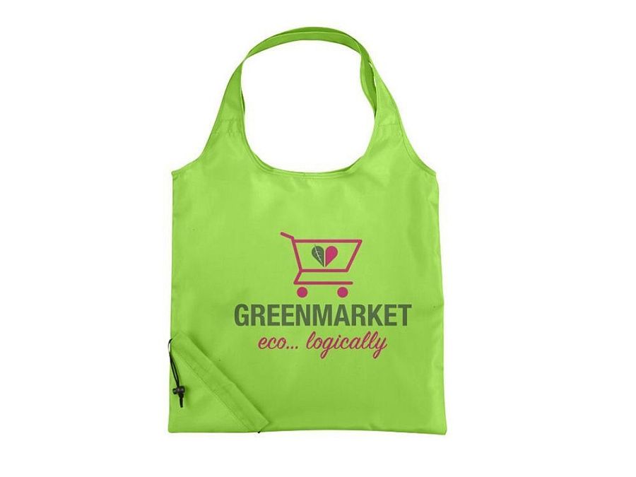 Складная сумка для покупок Bungalow. Открытое основное отделение с двойными ручками высотой 20 см. Уникальная складная сумка с кулиской. Полиэстер 210D.