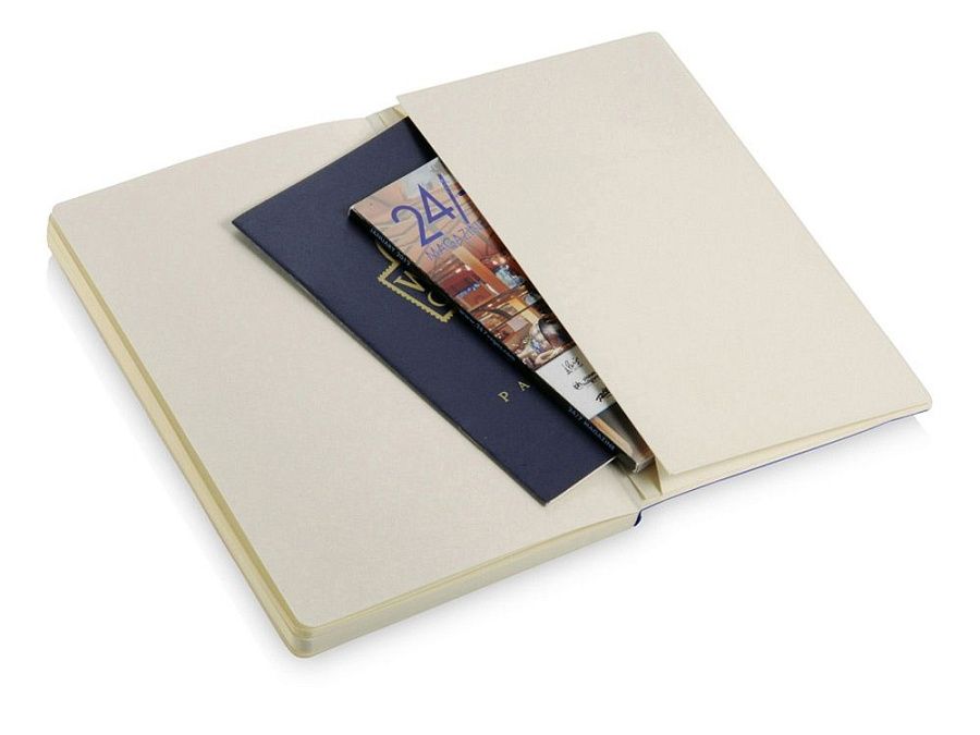 Классический блокнот с мягкой обложкой. Блокнот с мягкой на ощупь обложкой (ориентир размер А5) с эластичной застежкой, закладкой, кармашком для заметок внутри и 80 листов линованной бумаги (80 г/м²). Термо ПУ.
