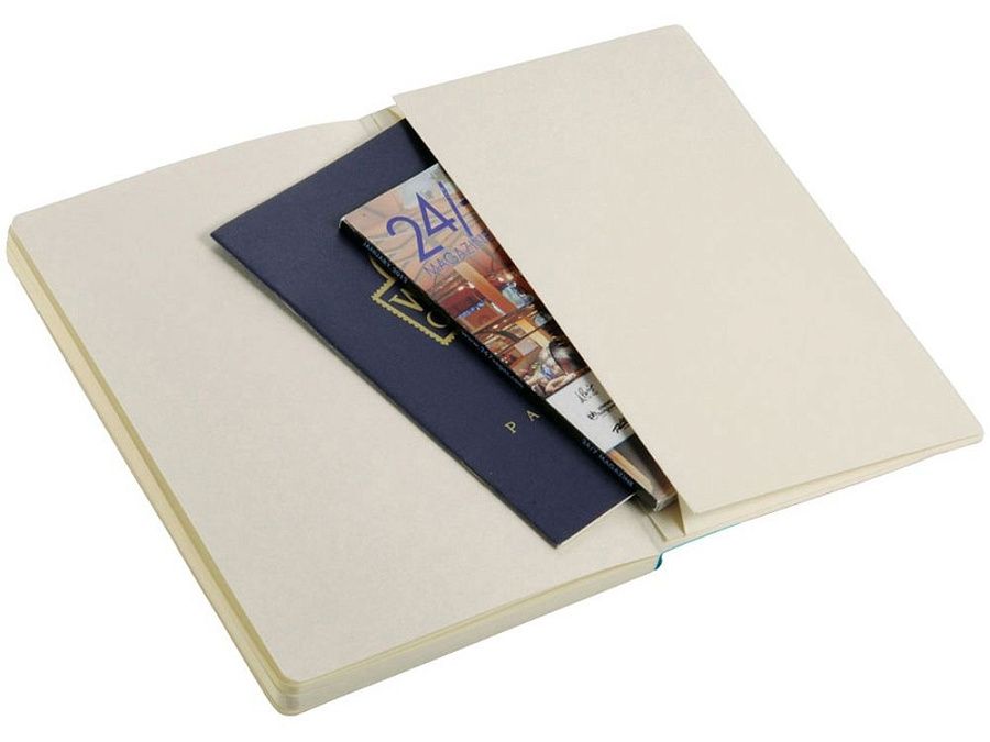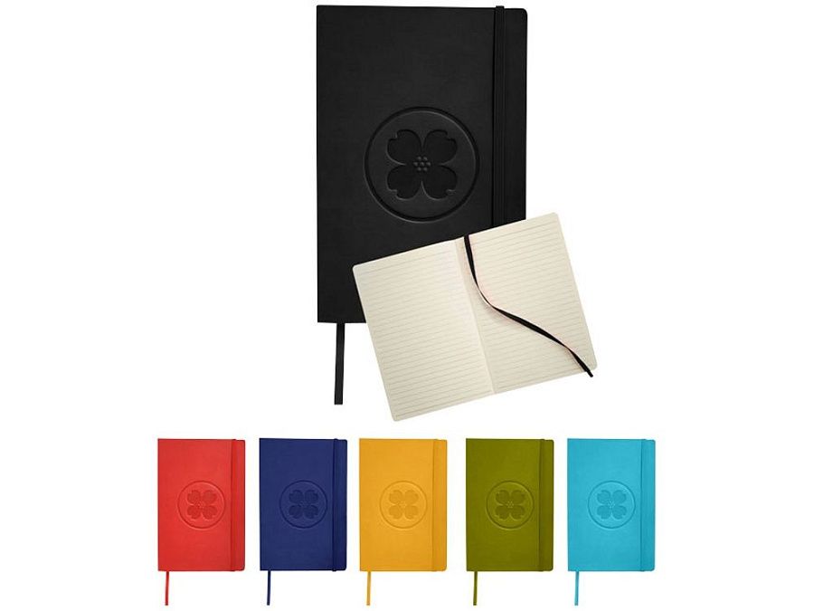 Классический блокнот с мягкой обложкой. Блокнот с мягкой на ощупь обложкой (ориентир размер А5) с эластичной застежкой, закладкой, кармашком для заметок внутри и 80 листов линованной бумаги (80 г/м²). Термо ПУ.