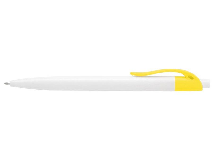 Стильная пластиковая ручка с ярким цветным клипом и белым корпусом отлично подойдет для нанесения логотипов и рекламной информации. Нажимной механизм.