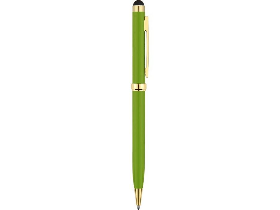 Стильная металлическая ручка со стилусом «Голд Сойер» – по-настоящему универсальный пишущий инструмент. Ею можно делать записи на бумаге, а перевернув, работать с емкостными экранами с помощью стилуса. Элегантность ручки подчеркивают позолоченные детали: клип, носик и кольцо.
