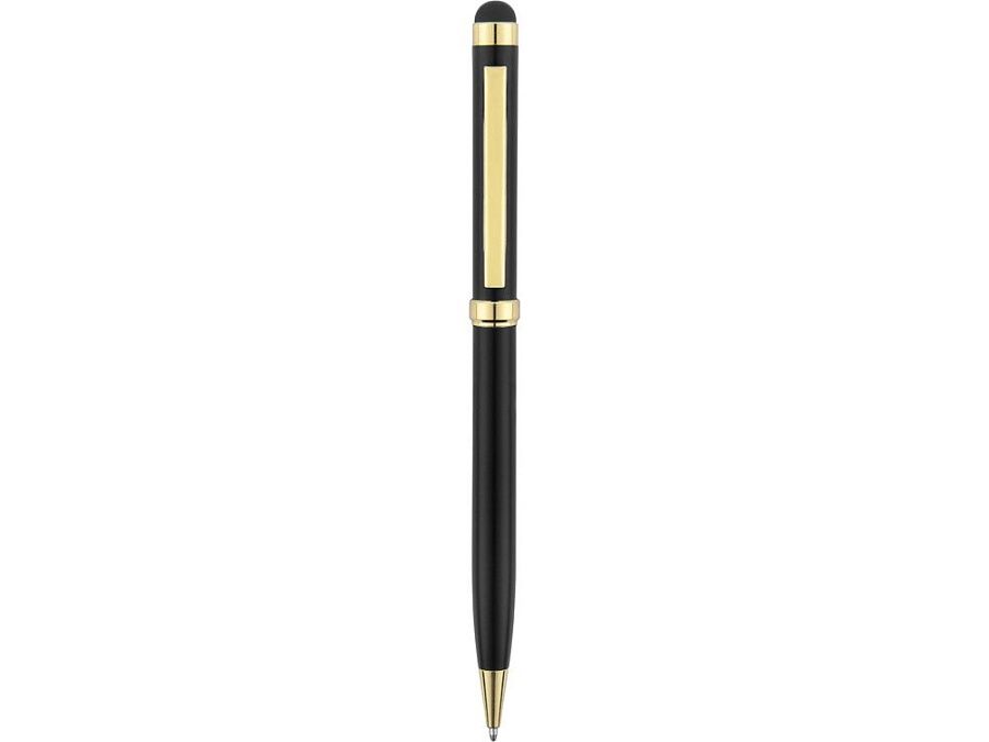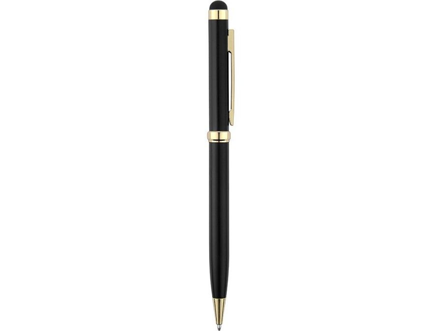 Стильная металлическая ручка со стилусом «Голд Сойер» – по-настоящему универсальный пишущий инструмент. Ею можно делать записи на бумаге, а перевернув, работать с емкостными экранами с помощью стилуса. Элегантность ручки подчеркивают позолоченные детали: клип, носик и кольцо.